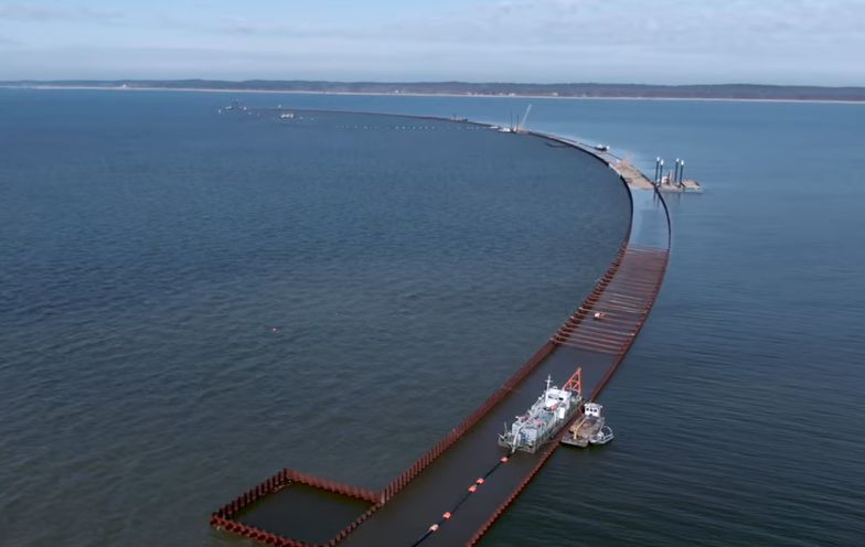 Postępują prace związane z budową nabrzeża południowego na mierzei wiślanej.